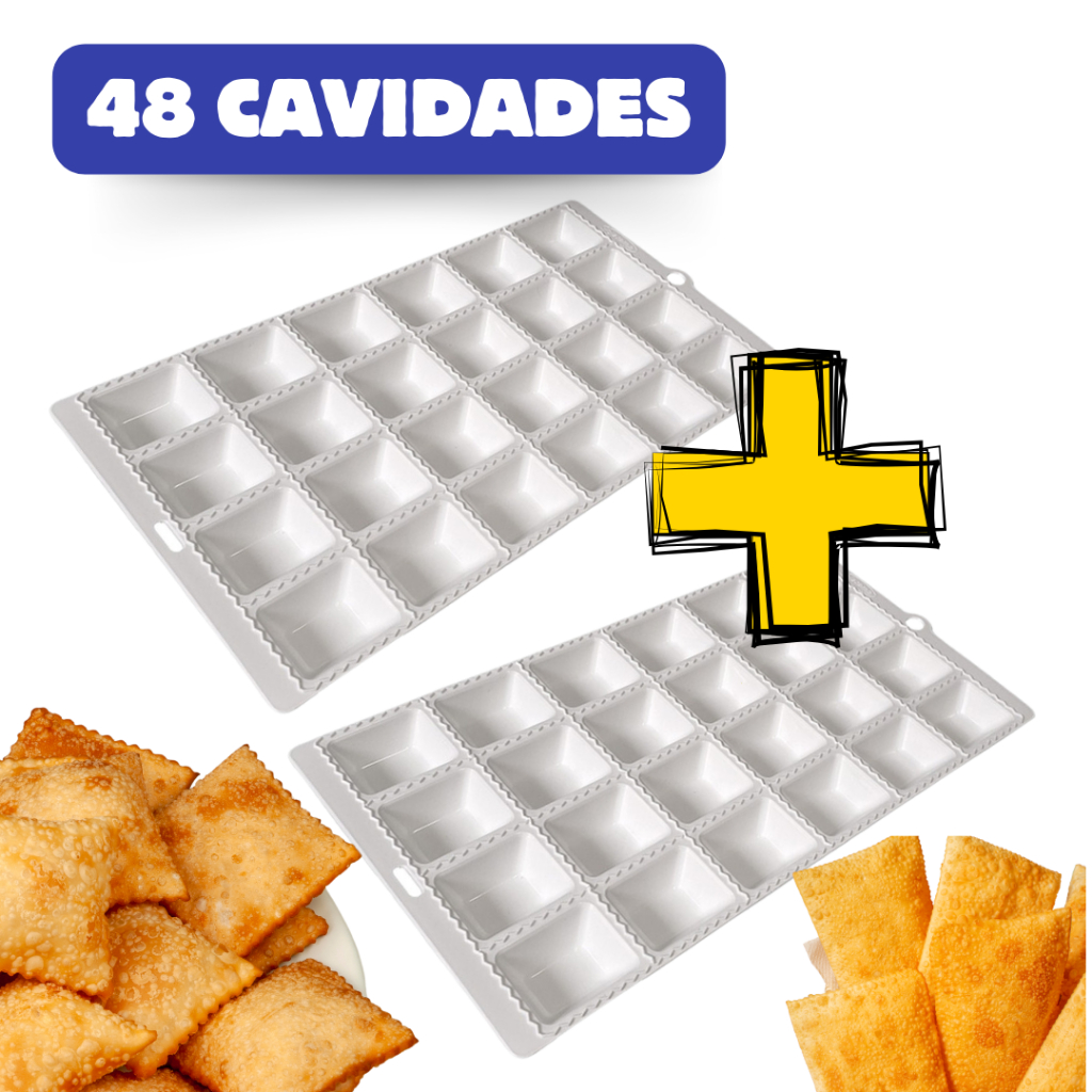 Forma com 48 ou 24 Cavidades de Plastico para Modelar Mini Pastel e Ravioli e Rolo de Madeira Cabo Giratorio para Abrir Massas Lasanha Pao Pizzas Pastelzinhos Forminhas de Festa Mine Pastéis