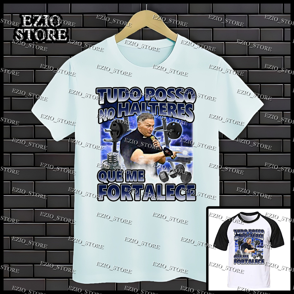 Camiseta Padre Marcelo Rossi Maromba "Tudo Posso no Halteres que me Fortalece" , Meme Academia Treino, Blusa Unissex