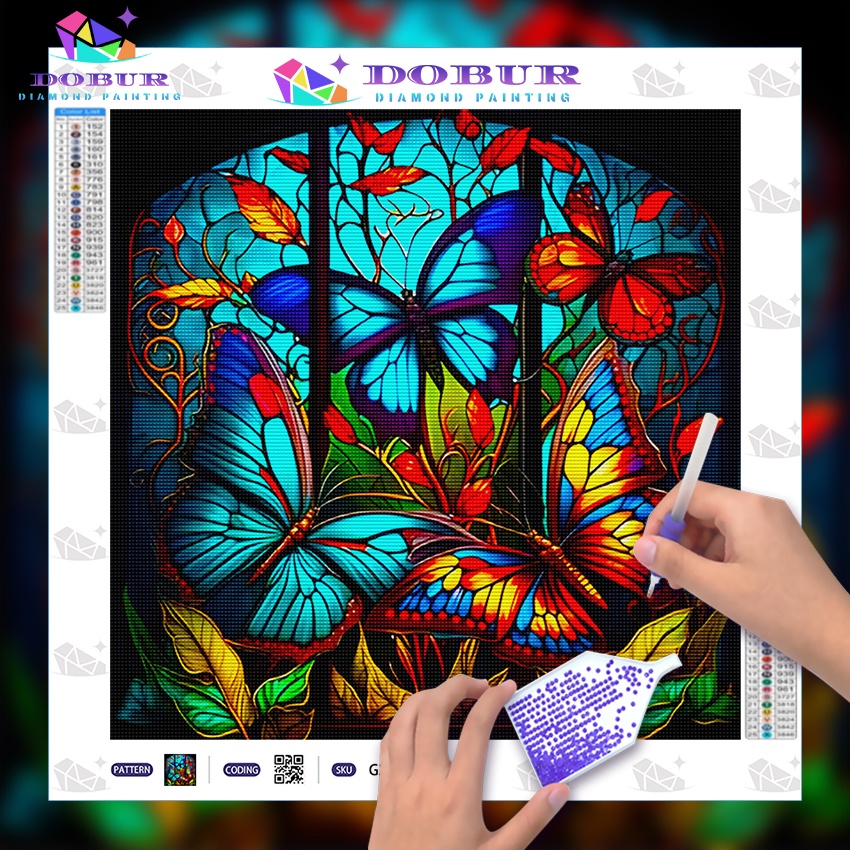 DOBUR | Conjunto De Pintura Com Diamante Borboleta Colorida 5D DIY Round/Square Full Drill Canvas Número De Artesanato Decoração De Parede Doméstica
