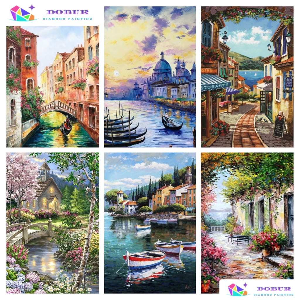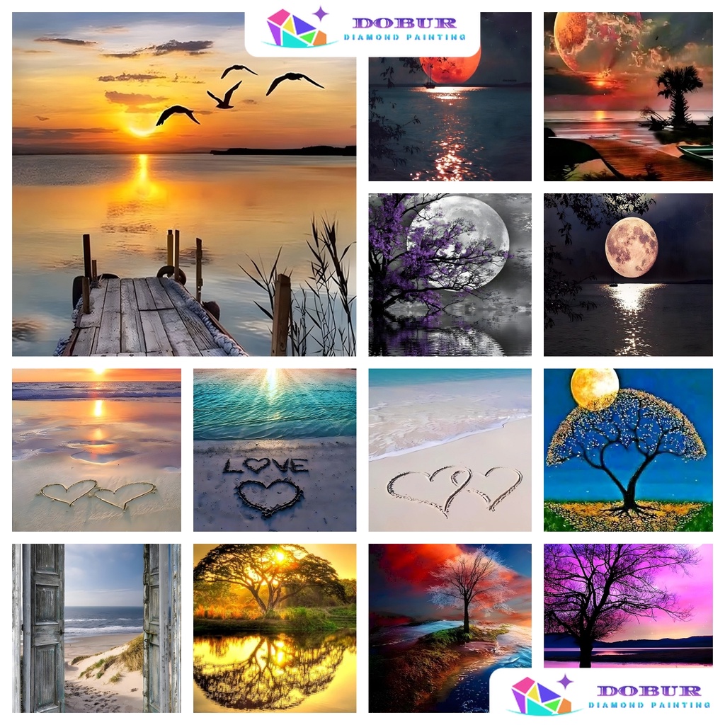DOBUR | Conjunto De Pintura Com Diamante Paisagem Natural 5D DIY Round/Square Full Drill Canvas Número De Artesanato Decoração De Parede Doméstica