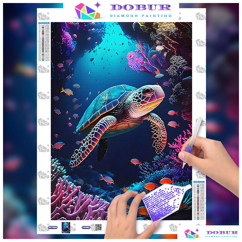 DOBUR | Conjunto De Pintura Com Diamante Tartaruga Marinha 5D DIY Round/Square Full Drill Canvas Número De Artesanato Decoração De Parede Doméstica