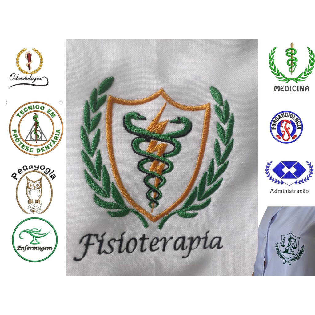Jaleco Branco Todas as Especilidades Nome Bordado No Peito e Brasão, manga esquerda Com Ziper Gola Padre.