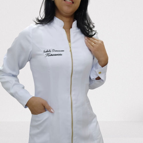 Jaleco feminino modelo Elisa + bordado de nome e profissão