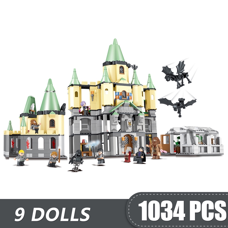 1034PCS Blocos De Construção Tijolos Lego Harry Potter Hogwarts Compatíveis Brinquedos Do Castelo Verde Para Meninas Conjuntos De Meninos