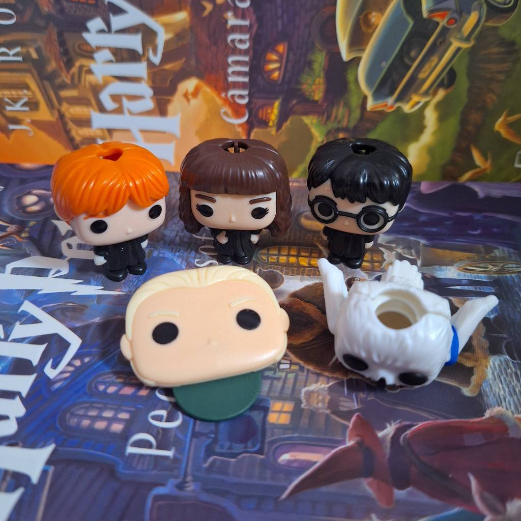 Brinquedo Kinder Joy Harry Potter Funko Hermione Granger Rony Weasley Edwiges Draco Malfoy Castelo Hogwarts