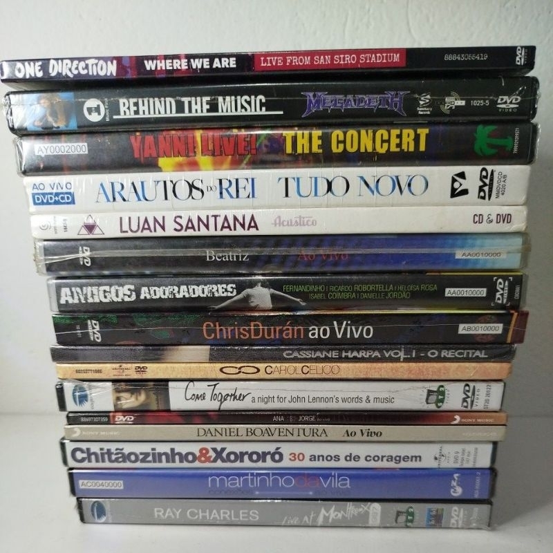 DVD'S LACRADOS DE FABRICA ORIGINAIS - MÚSICA - one direction Megadeth yanni arautos do rei Luan Santana Beatriz Chris durán Cassiane Carol celico John Lennon Ana e Jorge Daniel Boaventura chitãozinho e Xororó Martinho da vila Ray Charles