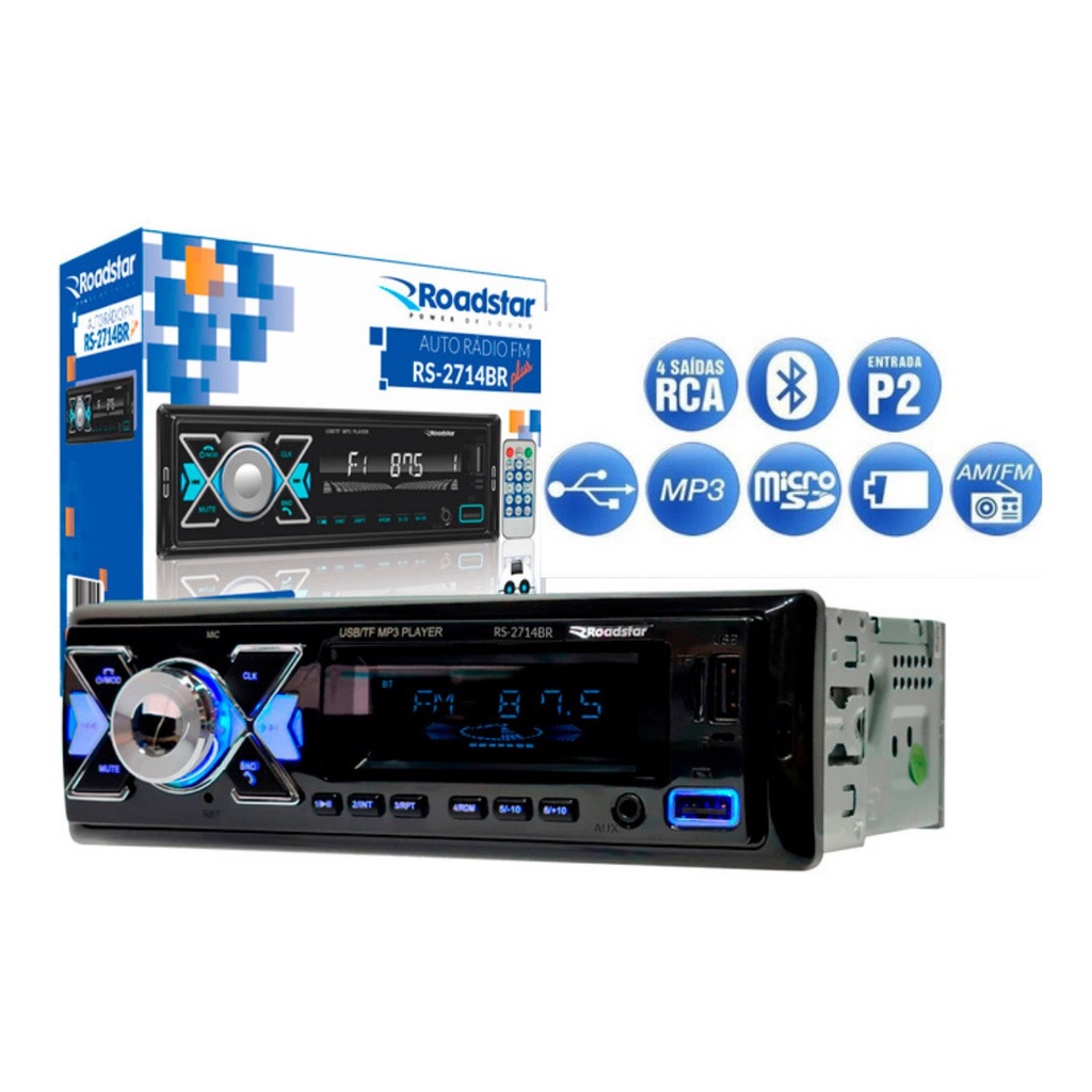 Rádio MP3 Player Roadstar RS2714BR BT/2 USB/SD/FM/Auxiliar C/Controle - 4 x 55w
