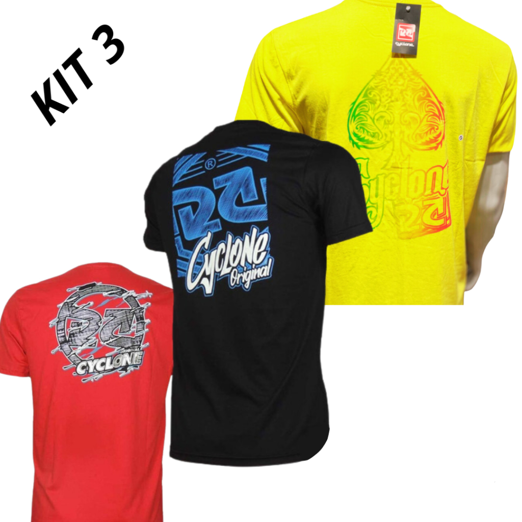 Kit/3 camisetas masculina da cyclone lançamento estampa na costa - sortidas e variadas