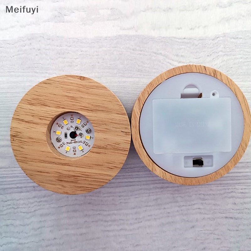 [Meifuyi] 8cm Base De Luz Redonda LED Dispaly Suporte De Mesa 3D Lâmpada Noturna Crystal Glass Resin Art Ornamentos COD