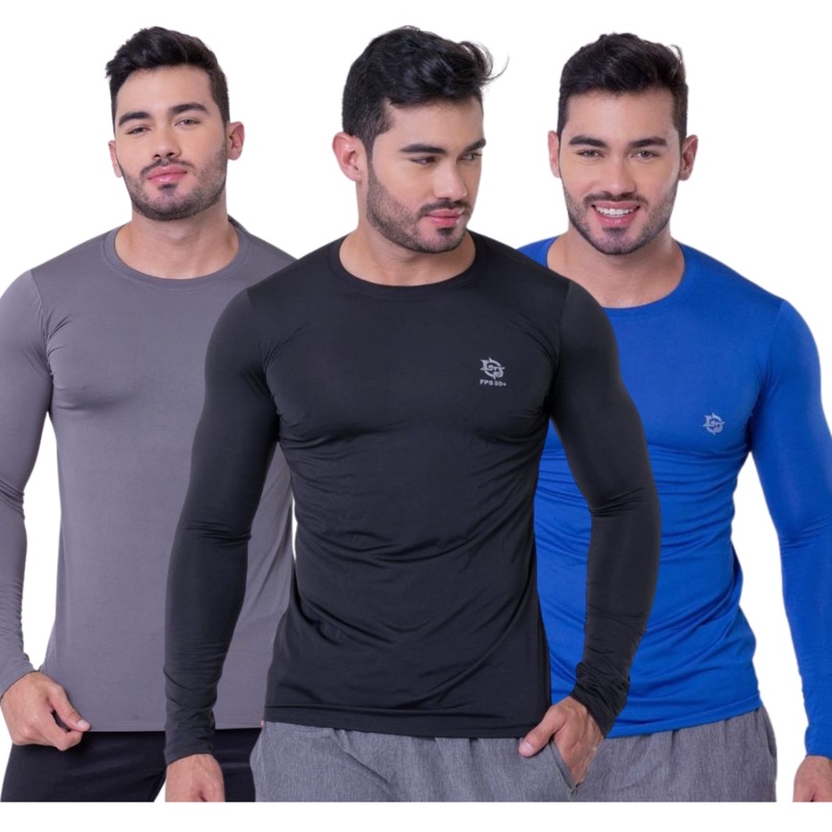 Promoção Kit 3 Camisa Proteção Solar UV+50 Praia Corrida Vôlei Moda Esportiva Segunda Pele Térmica Camiseta Proteção Contra Raios Solares E Também Opção de 1 Unidade
