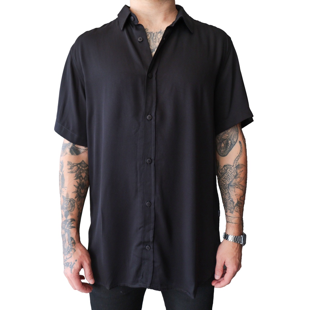 Camisa Social Masculina Manga Curta Preta Feminina Viscose Unissex