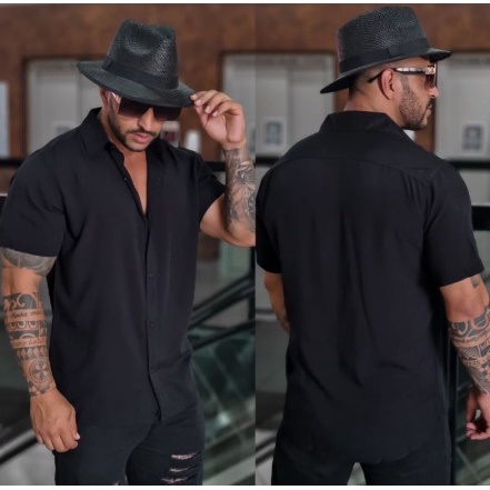 Camisa Slim Unissex Masculina Viscose Slim Fit Preta Alta Qualidade Tendência Moda 2024