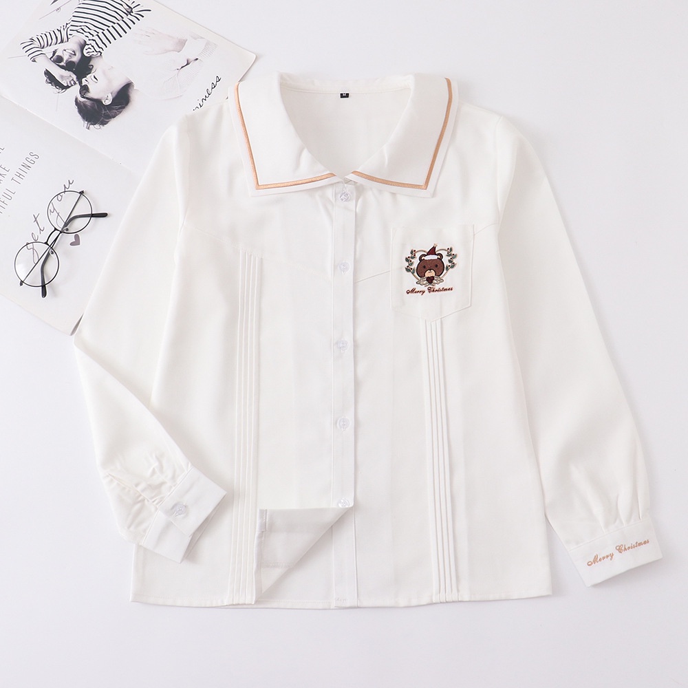 2023 Estilos jk Uniforme Original [Urso De Natal] Camisa Bordada Estudante Preppy Style School Escolar Material