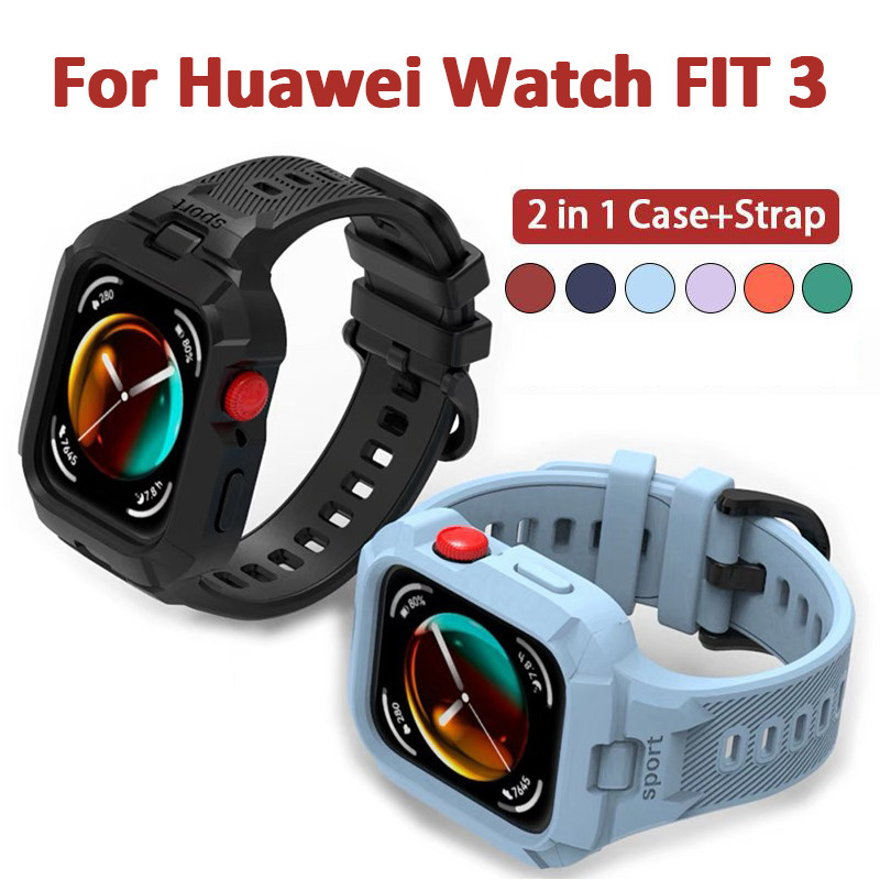 2 Em 1 Case + Strap Para Relógio Huawei Fit 3 Bracelete TPU Soft Pulseira Fit3 Correia De Substituição De Esportiva De Silicone