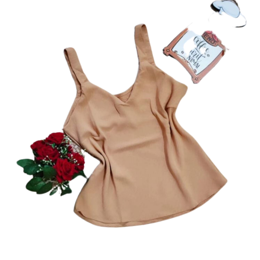 Blusa Regata Social de Alça Grossa Plus Size Moda Simples Bege