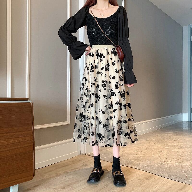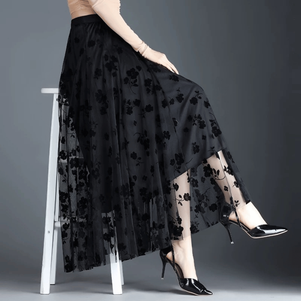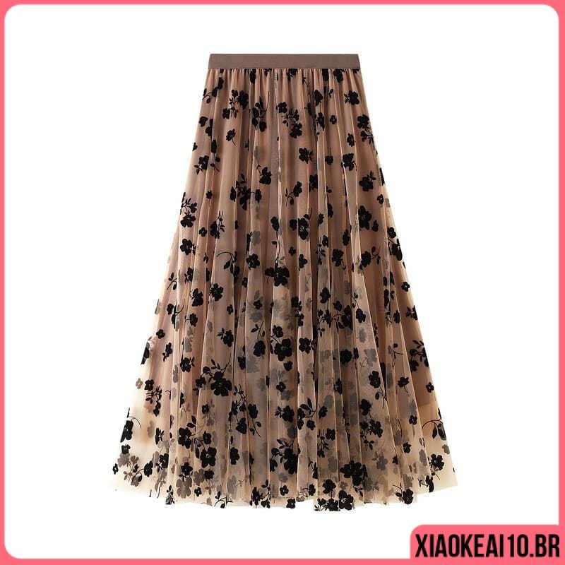 Saia de Tule adulta da moda feminina comprida longa para festa com flores