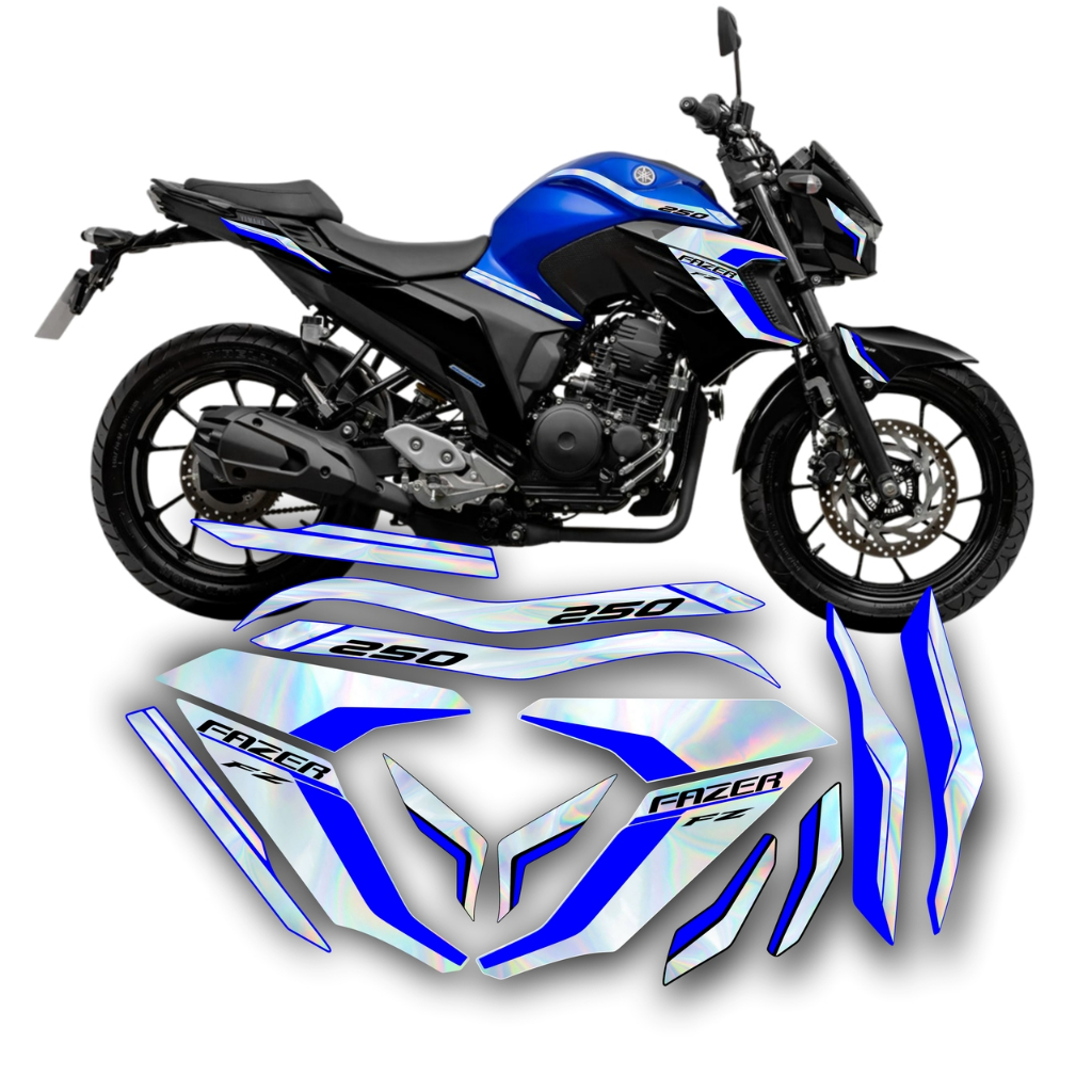 Kit Jogo Faixas Adesivos Emblemas Yamaha Fazer 250 2016 a 2024 Holografico Varias Cores