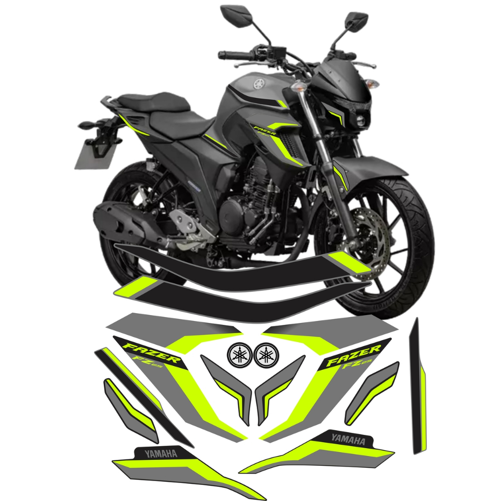 Kit Faixas Adesivos Yamaha Fz25 2024 Abs Cinza Verde Laminado Serve na 2016 a 2024