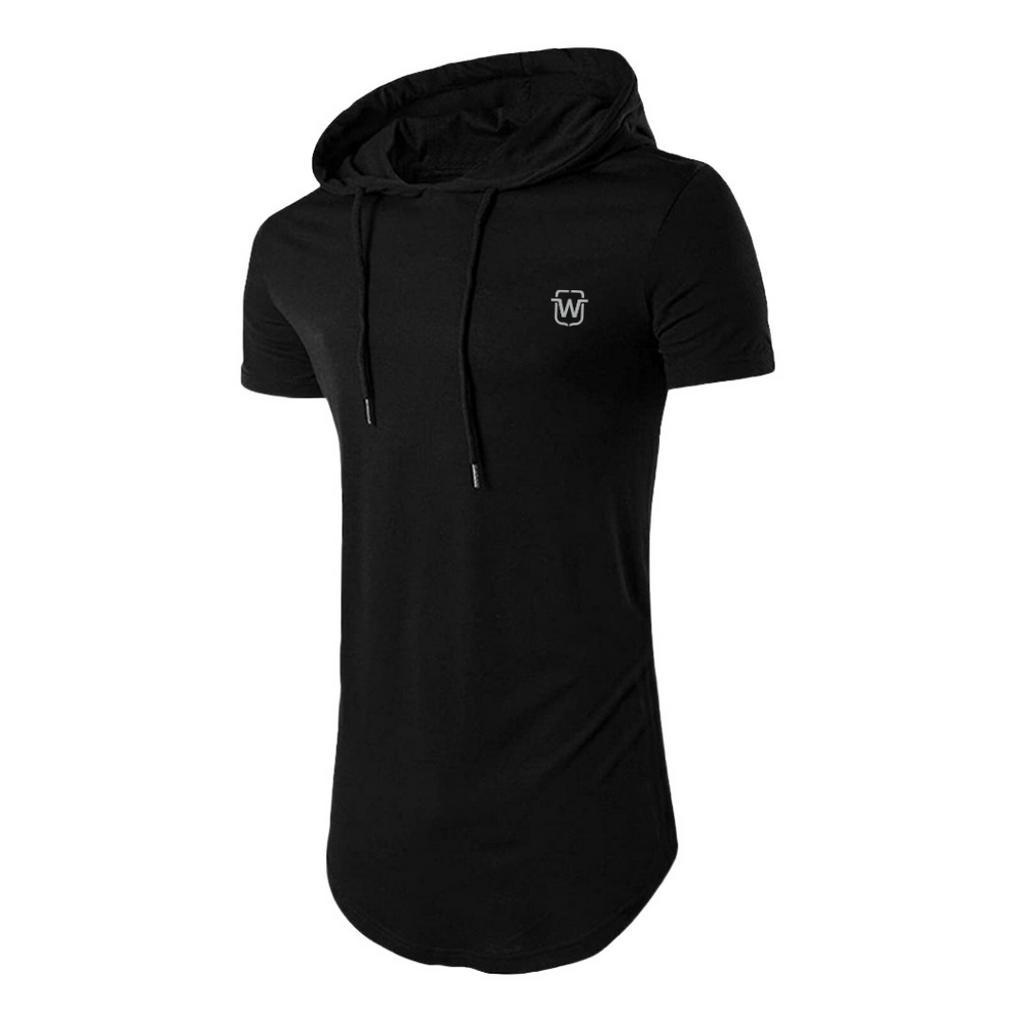 Camiseta de Manga Curta com Capuz Cor Lisa Gola Redonda Masculina