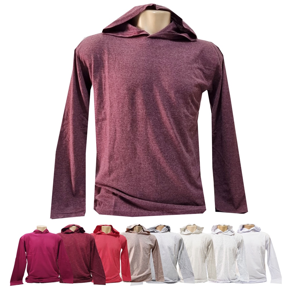 Blusa Camiseta Masculina Manga Longa Algodão Lisa Gola Redonda Com Capuz Sem Bolso