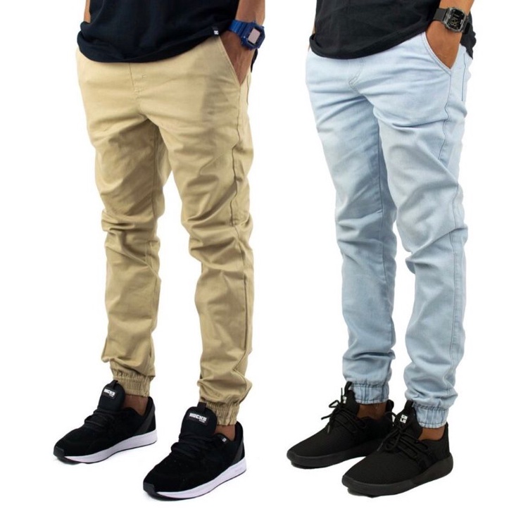 Kt 2 Calça Jogger Masculina Jeans Sarja Premium cor bege, preta