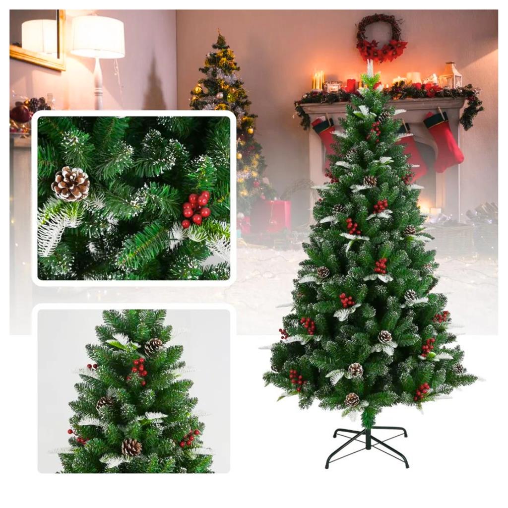 Arvore Natal Nevada Enfeite Pinha Cereja 1,80m 600 Galhos