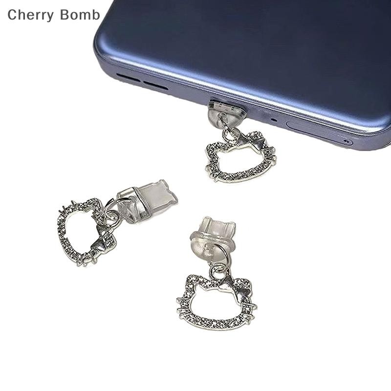 (Bomba Cereja) 1 Pc Anime Cartoon Celular Universal Dust Plug Sanrio Hello Kitty Para Telefone 6-14 Tipo-c Pingente Joia