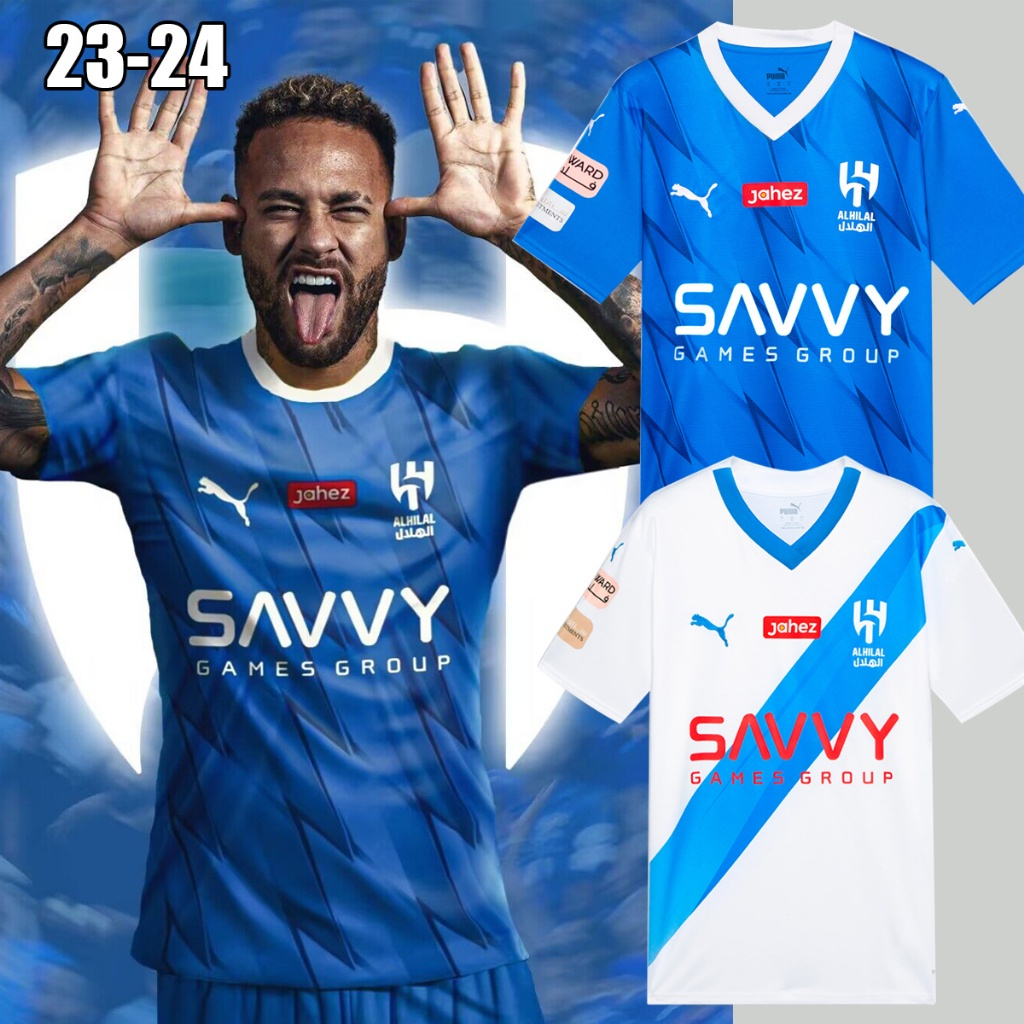 Novo 2023 24 Camisa de Time Al Hilal Branca_Azul com Nome Nerymar número 10