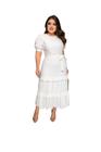 Vestido Midi Feminino Malha Lese Manga Curta Plus Size Moda Crista Evangelico 090