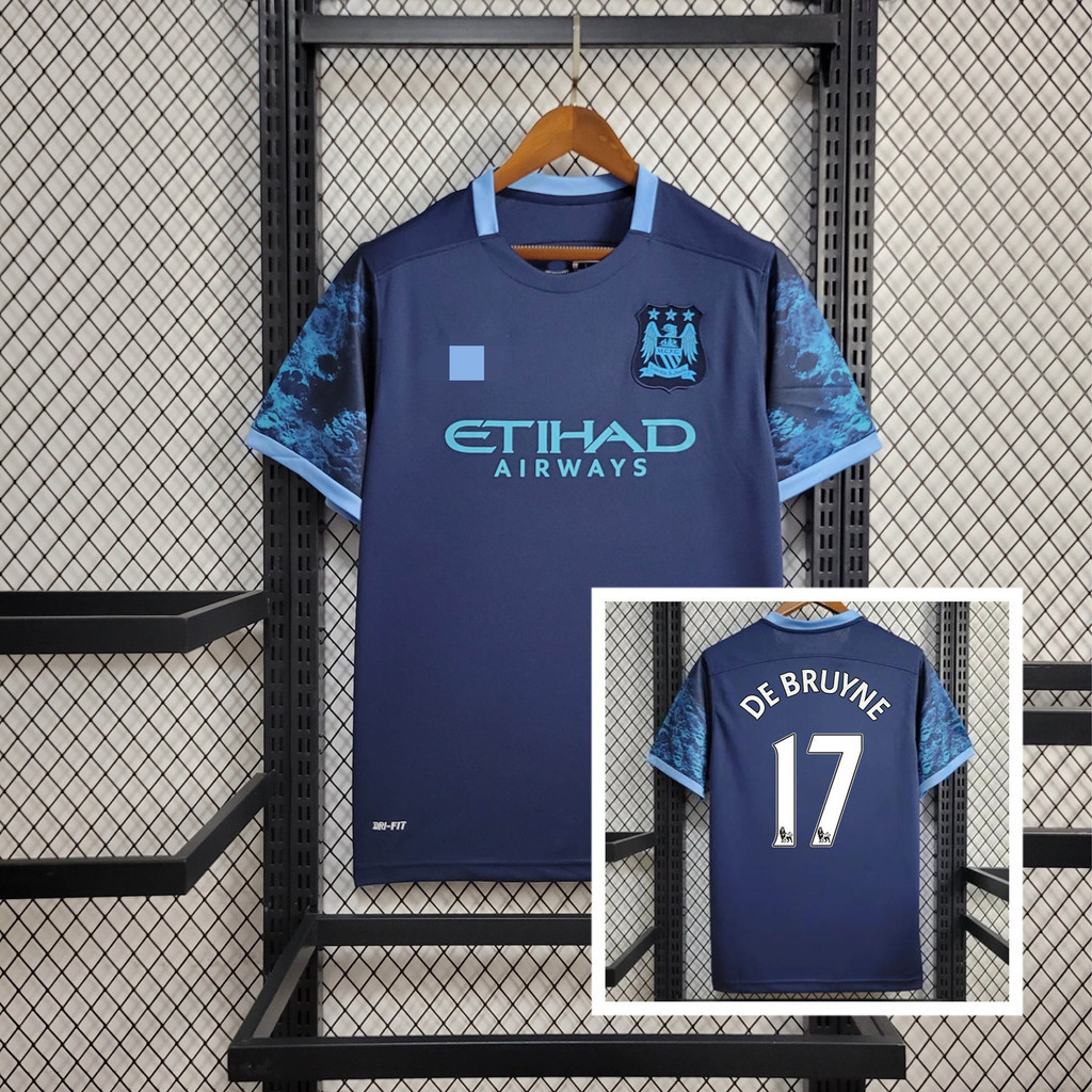 Blusa De Moletom | Retro 2015-16-Temporada Manchester City Away Royal/Blue Manga Curta