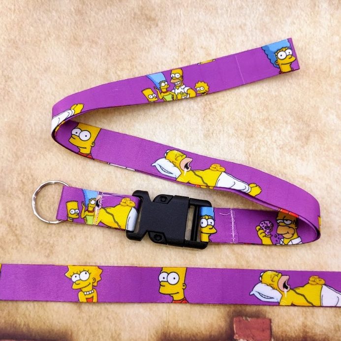 Cordão OS SIMPSONS ROXO Tirante para Pescoço com Engate Rápido e Argola prente Crachá Chupeta Chaveio