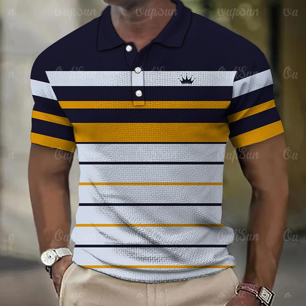 Camiseta De Verão Retro Listrada Impressa POLO Casual De Praia Manga Curta