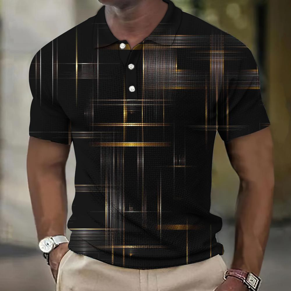Summer Men's Retro Street Camisa POLO Manga Curta Casual Plaid Print Camiseta De Golfe Top