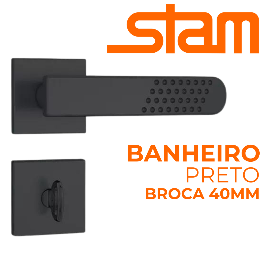 Fechadura Banheiro Stam 823/35 Preto Fosco Roseta Quadrada - Caixa 40mm