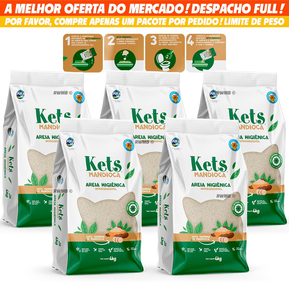 Fardo Com 5 Pacotes de 4kg Areia Higiênica Mandioca Biodegradável Com Alta Absorção Forma Torrões Firmes e Evita Odores