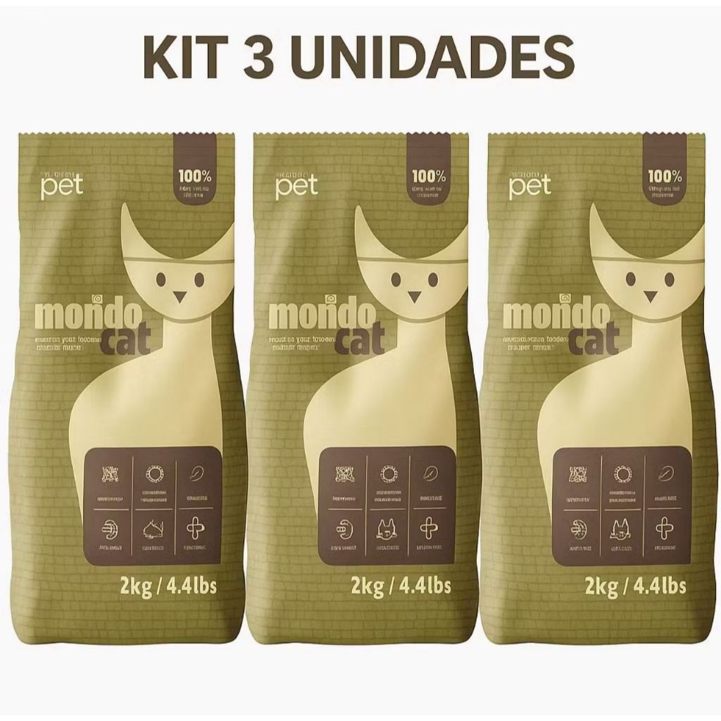 Areia Higiênica Mandiocat Kit com 3 pacotes 2kg – Natural de Mandioca, Elimina Odores, Tora Torrões, Eco-Friendly
