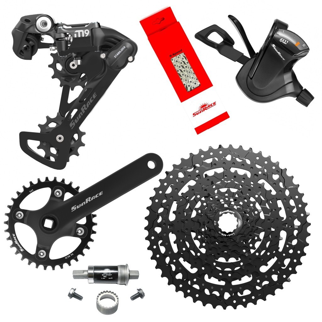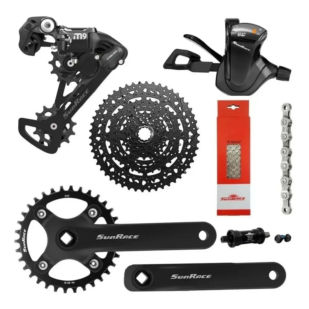 Kit Grupo Transmissão Completa Sunrace M9 1x9 Original Câmbio Traseiro Alavanca K7 11/50d Pedivela Coroa 34t Corrente Bike Bicicleta 6 Peças Single 9v