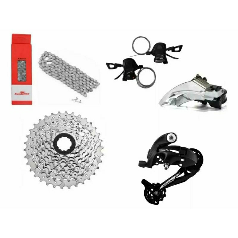 KIT TRANSMISSÃO SUNRACE SR DKM 24V Mtb 3x8v 6 Peças Para Bike