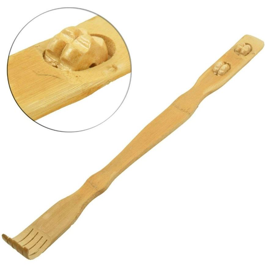 Coçador de Costas de Bambú com Massageador Mãozinha