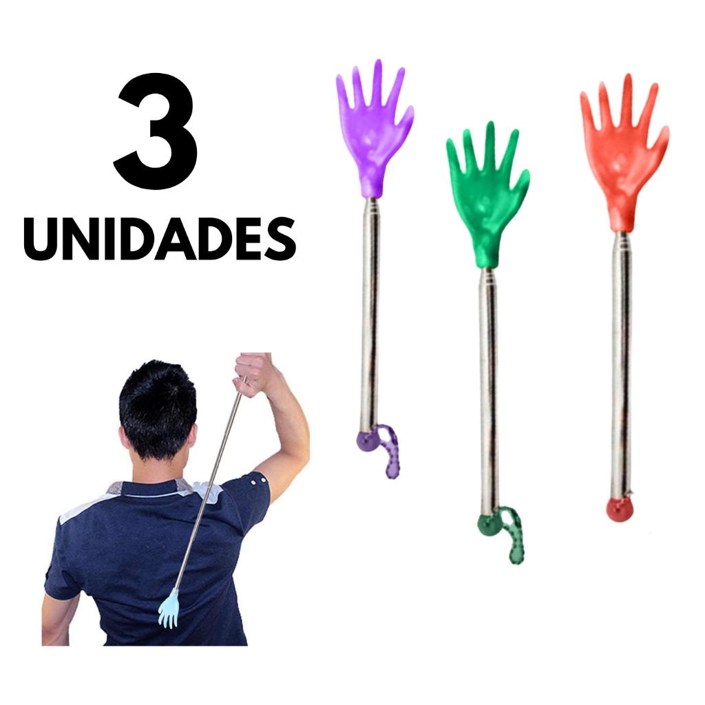 3 Unidades Mãozinha Massageador Mão Retratil P/ Coçar Costas Coçador Massageador 44cm
