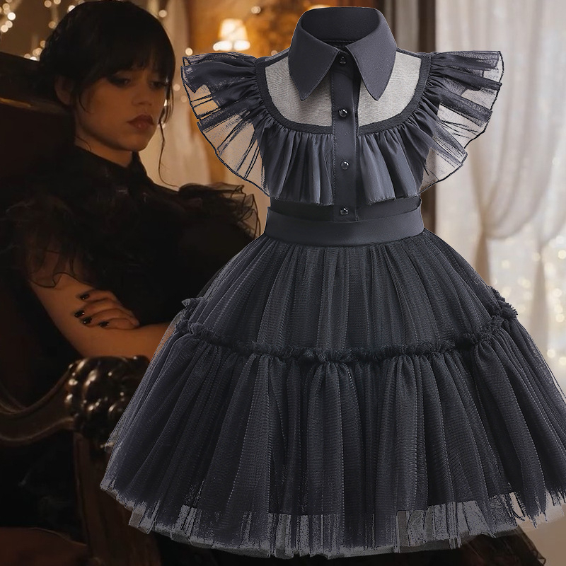 1-6 Anos Quarta-Feira Addams Vestido de Verão para Bebés Roupas de Criança