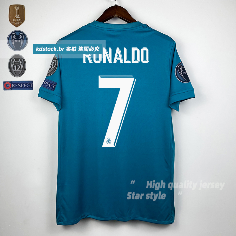 17-18real Madrid Segunda Camisa de Futebol de Longa Distância No. 7 RONALDO Retro Football Jersey Liga Européia do Campeonato Europeu de Futebol Jersey Personalização