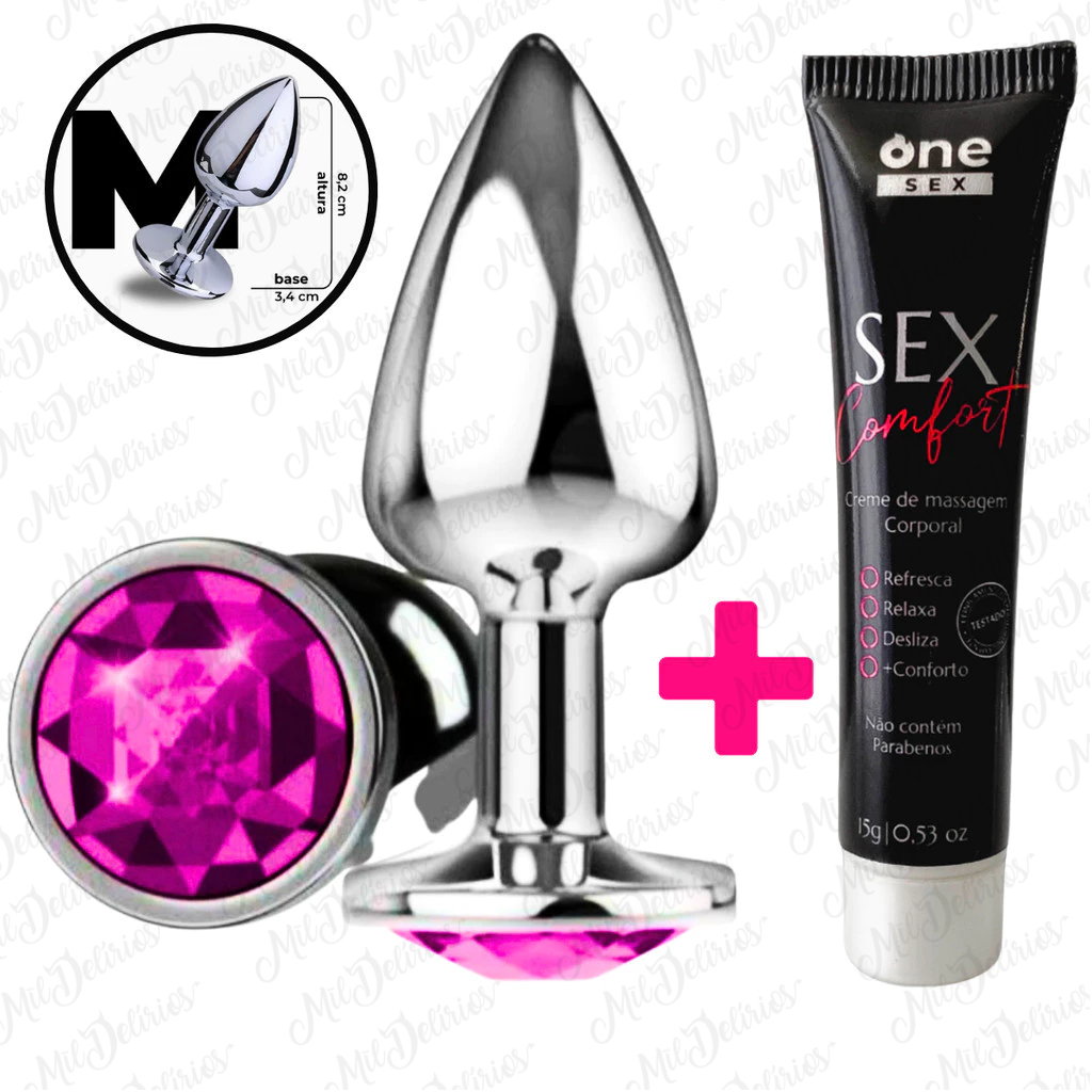 Kit Plug Anal Tamanho M + Gel Lubrificante Anal Sex Comfort