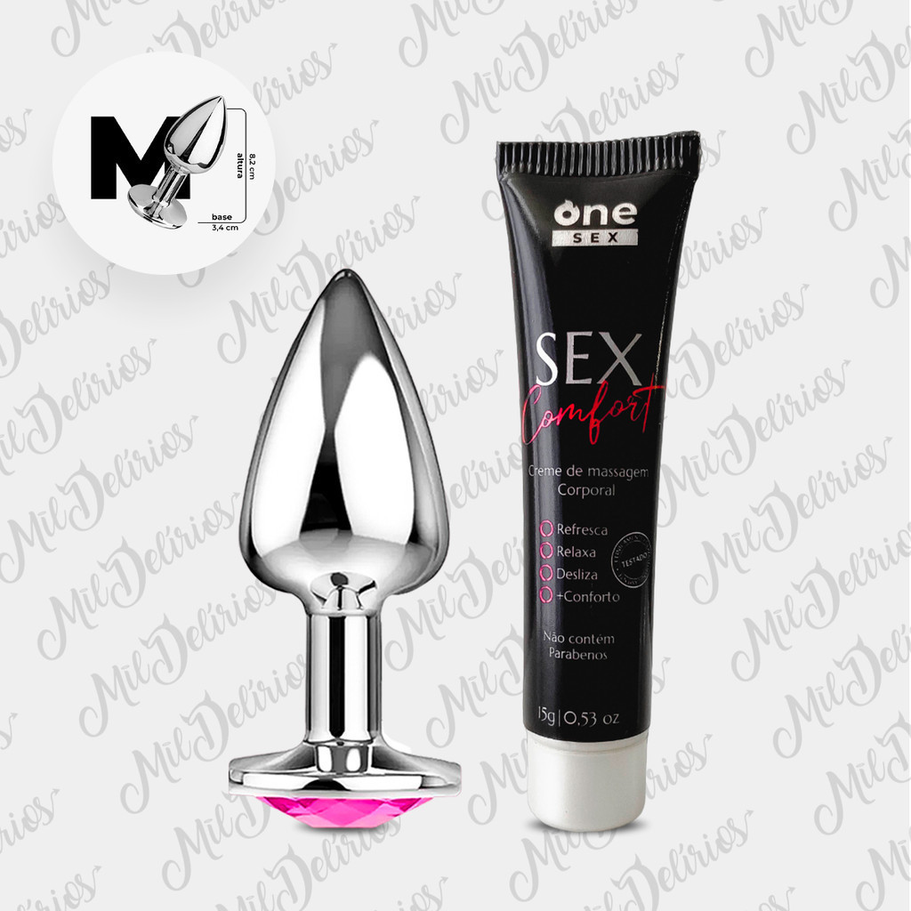 Kit Plug Anal Tamanho M Médio + Gel Lubrificante Anal Sex Comfort One Sex