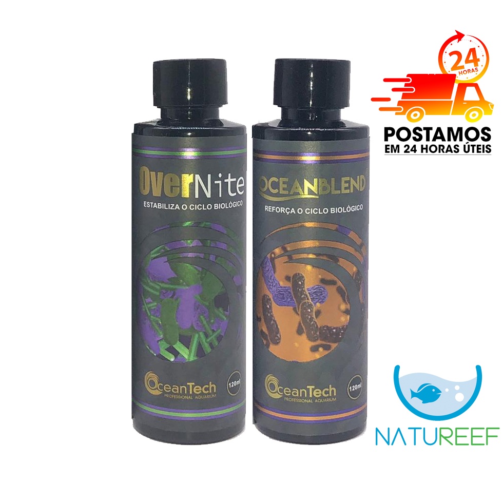 Kit OceanBlend 500ml + OverNite 500ml Ocean Tech Acelerador e Estabilizador Biológico para Ciclagem de Aquário
