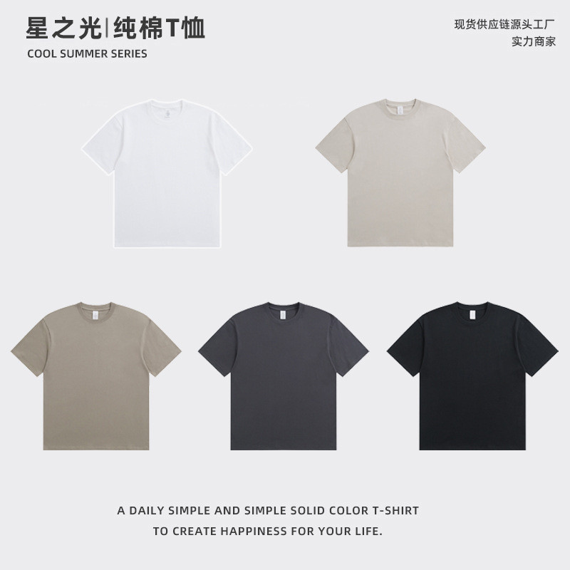 250g puro algodão camiseta masculina verão All-Match Casual pesado de manga curta cor sólida branco solto camisa de fund