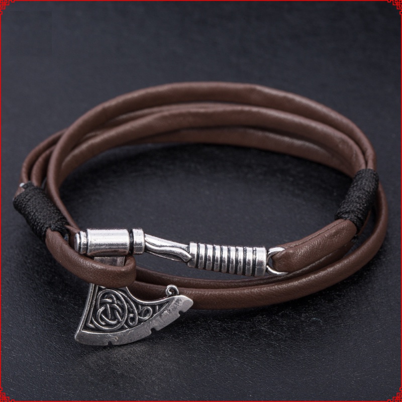 Pulseira De Couro Multi-Camadas Com Martelo Do Thor/Viking/Machado/Acessórios De Moda Masculina