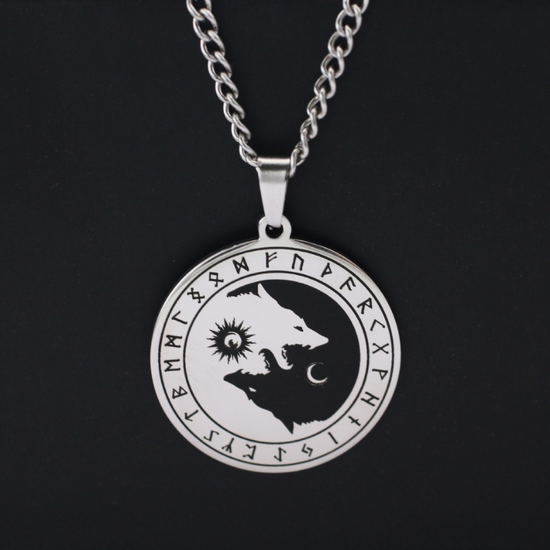 Vintage Nórdico Viking Moda Masculina De Aço Inoxidável Pingente De Runa De Lobo Colar Jóias Acessórios Locomotiva Presente