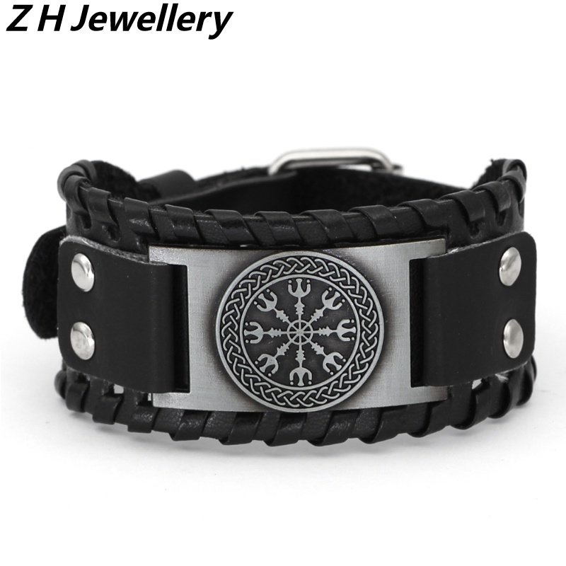 Viking Nórdico Moda Masculina Amuleto De Bússola De Couro Pulseira Hip Hop Party Acessórios De Jóias 18.5CM ~ 21.5CM