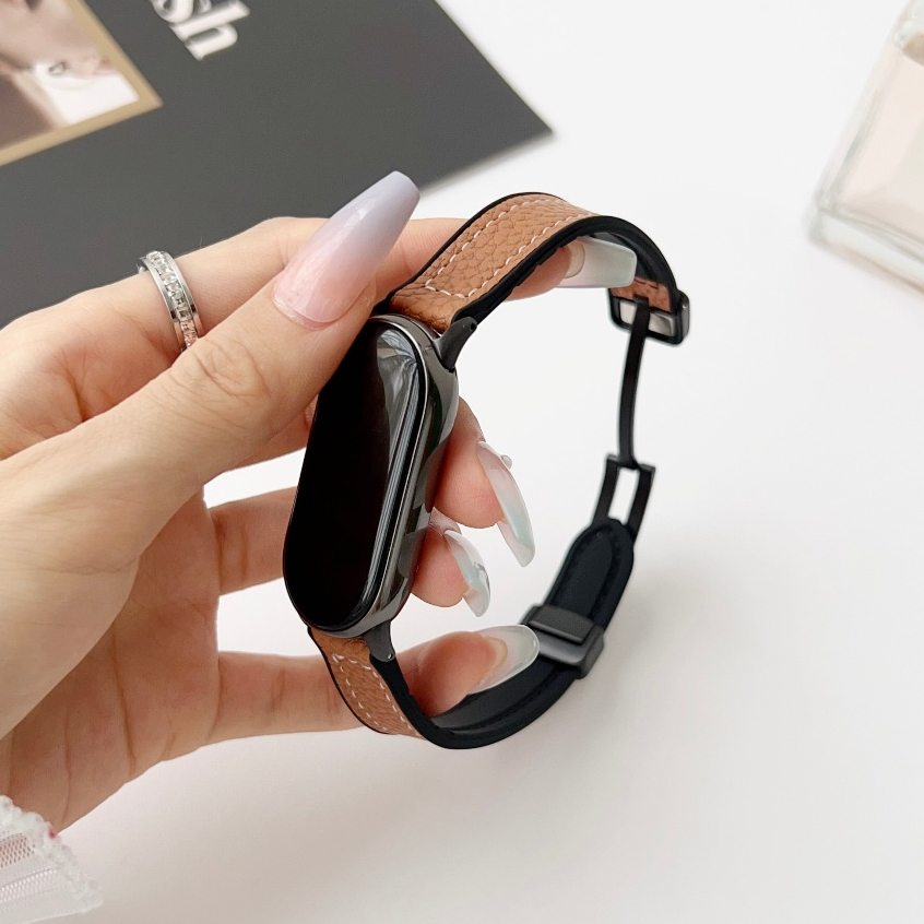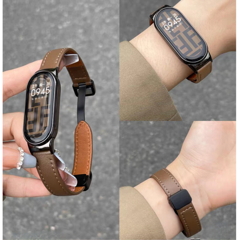 Adequado para Xiaomi Mi Band 9/8 Leather Strap Smart Sports 7 / 6 / 5 / nfc pulseira Couro Genuíno Fivela Magnética de Liberação Rápida